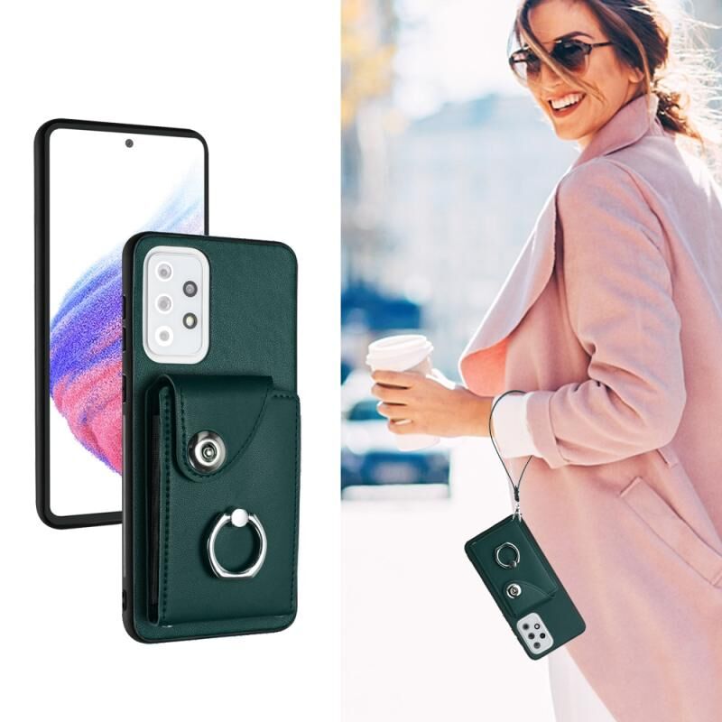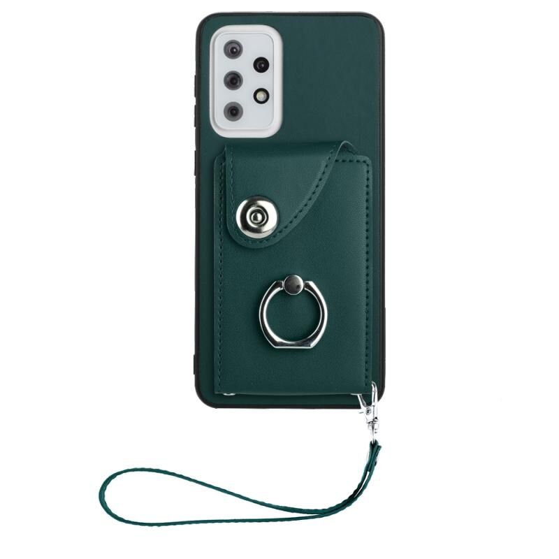 Για Samsung Galaxy A33 5G Οργάνου κάρτα τσάντα δαχτυλίδι κάτοχος PU υπόθεση τηλεφώνου με κορδόνι (πράσινο)