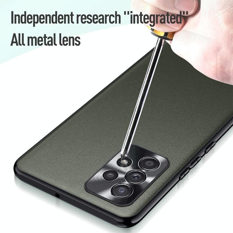 5. Μεταλλικός δακτύλιος φακού, σκληρό πίσω κάλυμμα, απλό δερμάτινο δέρμα, μαλακή άκρη TPU, σχεδιασμός all-inclusive, προστασία για το κινητό σας τηλέφωνο.