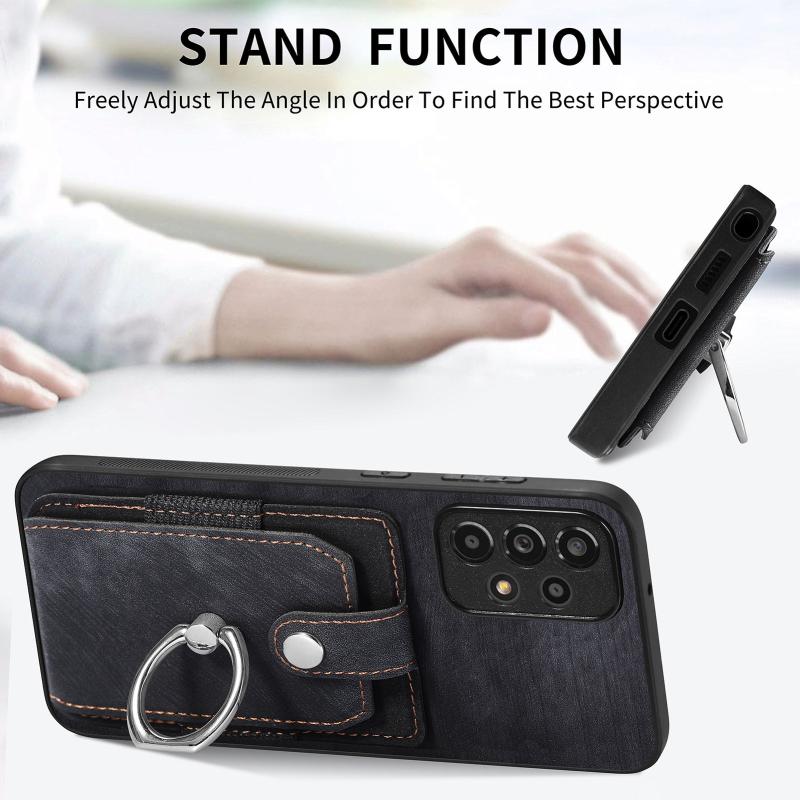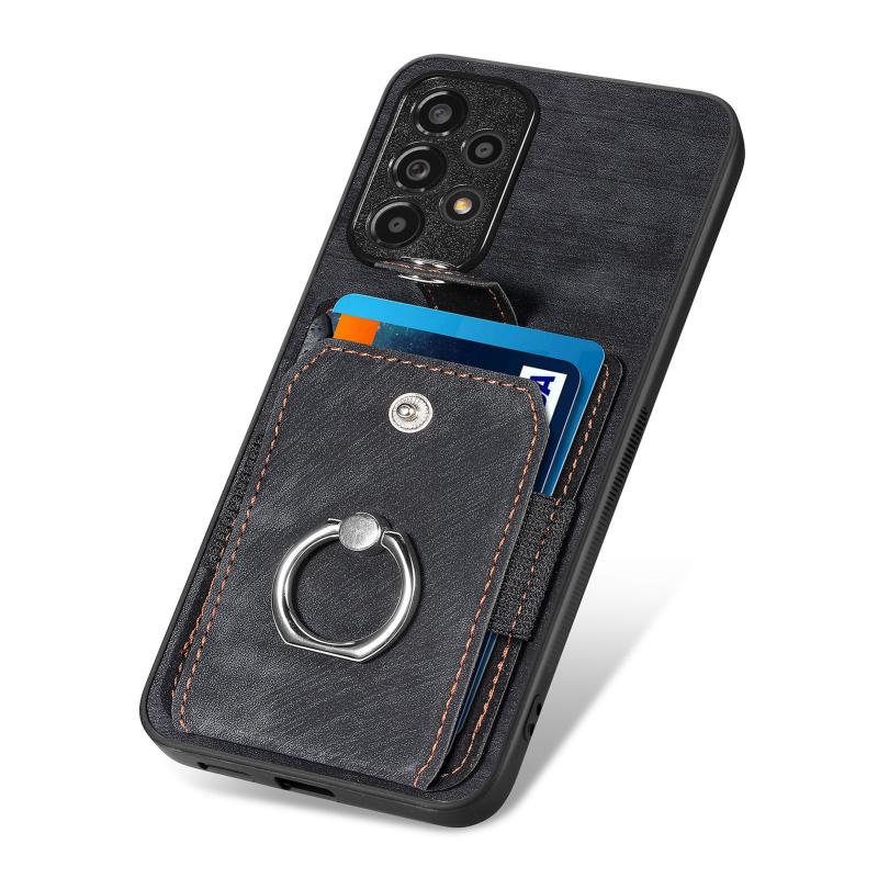 Θήκη κινητού τηλεφώνου Samsung Galaxy A33 5G με κάρτες και δακτύλιο, υφή retro (Καφέ)
