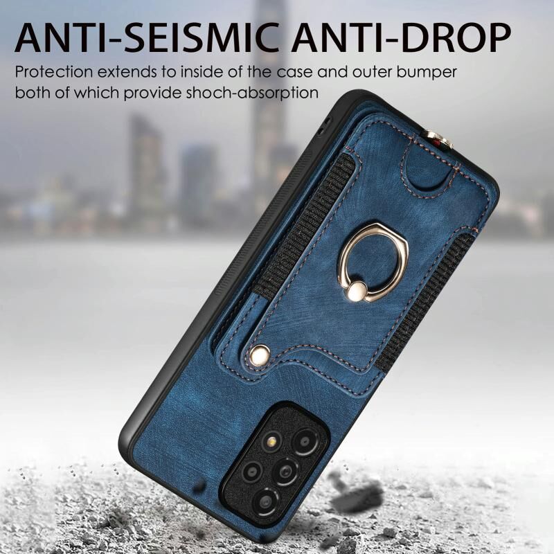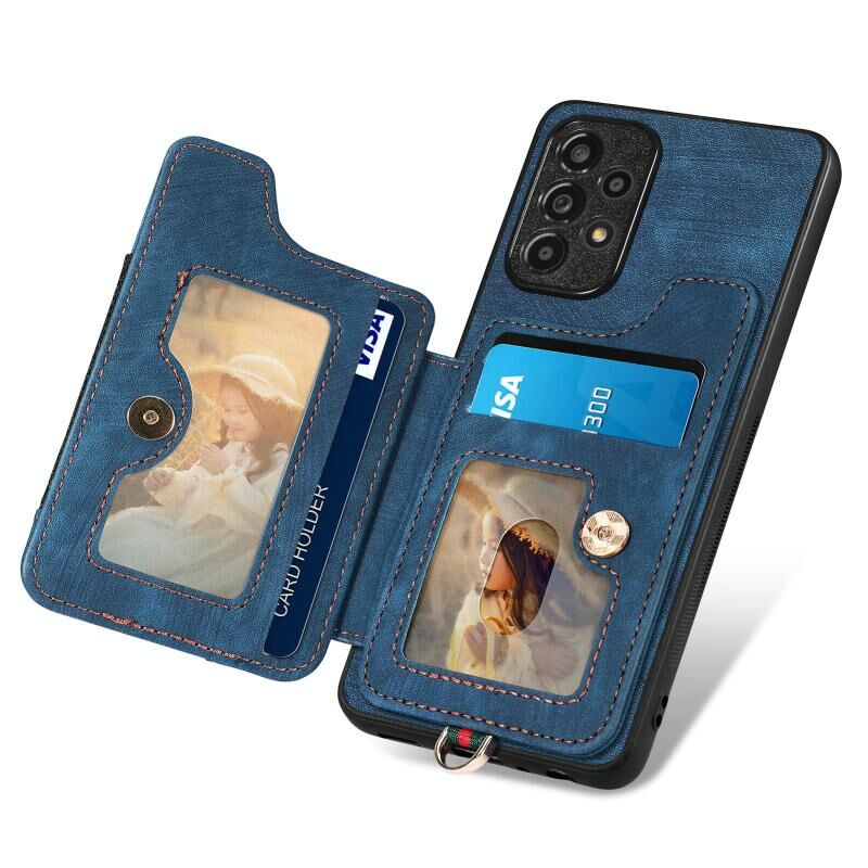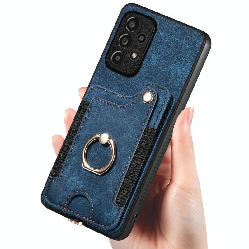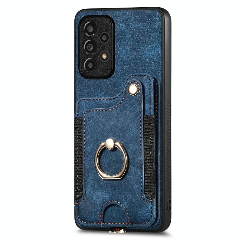 Για Samsung Galaxy A33 5G Ρετρό δέρμα-feel δαχτυλίδι δαχτυλίδι πολυ-κάρτα πορτοφόλι υπόθεση τηλεφώνου (μπλε)
