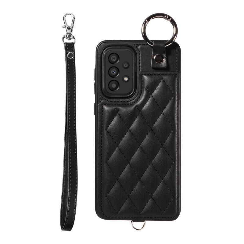 Για Samsung Galaxy A33 5G Rhombic υφή κάρτα τσάντα υπόθεση τηλεφώνου με σύντομο κορδόνι (μαύρο)