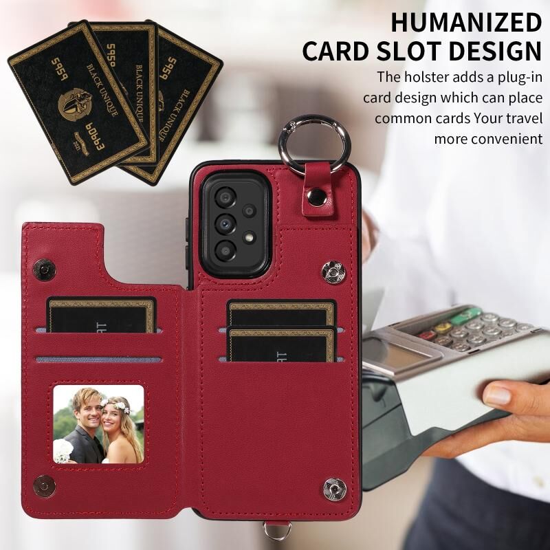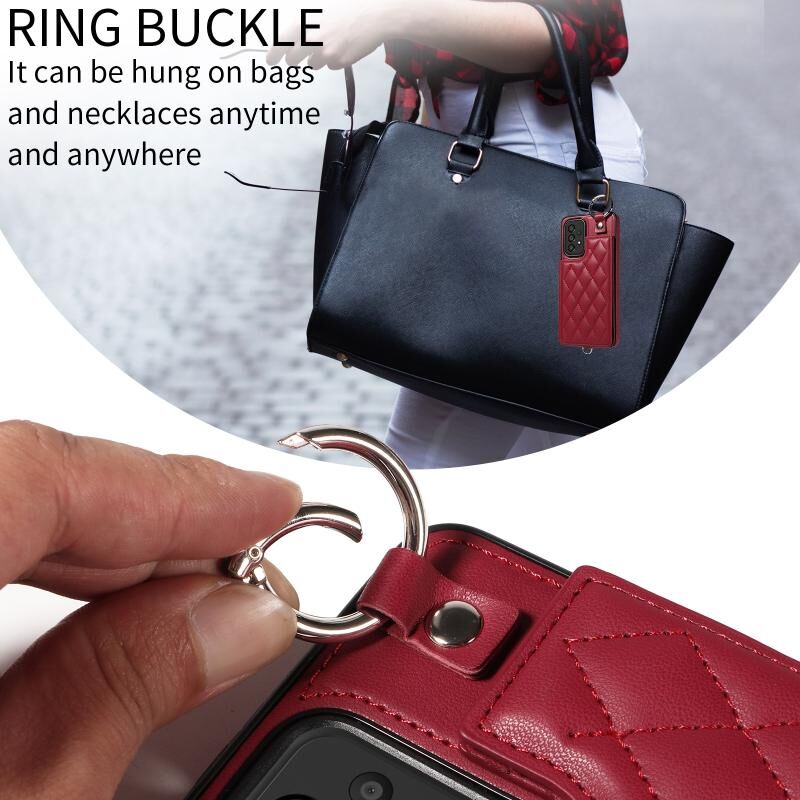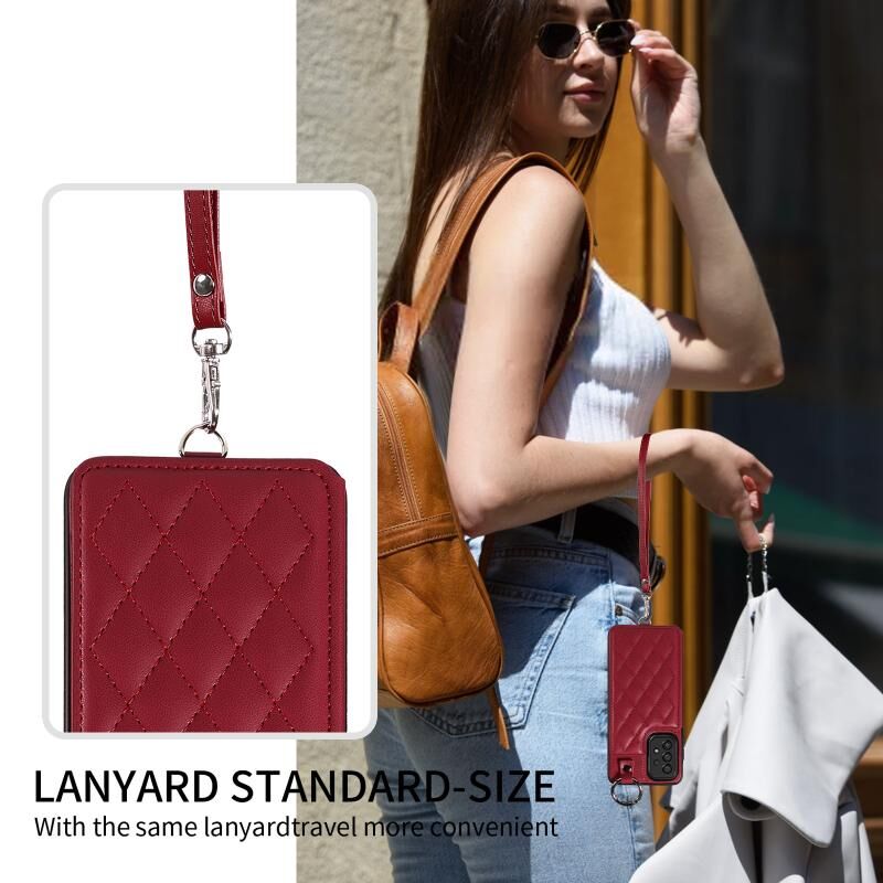 Για Samsung Galaxy A33 5G Rhombic υφή κάρτα τσάντα υπόθεση τηλεφώνου με σύντομο κορδόνι (κόκκινο κρασί)