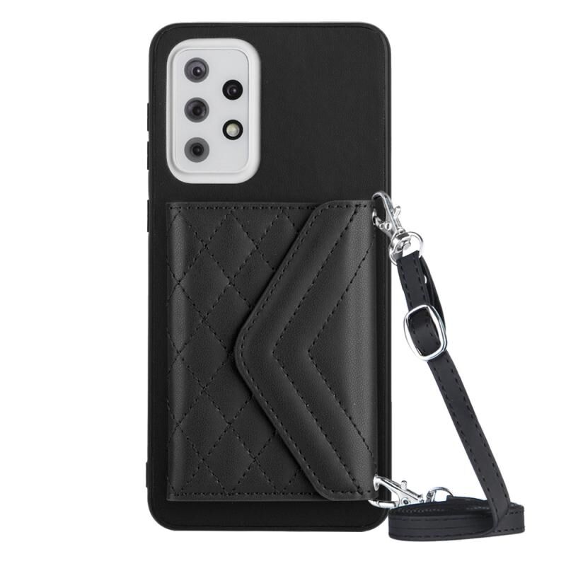 Για Samsung Galaxy A33 5G Rhombic υφή κάρτα τσάντα RFID υπόθεση τηλεφώνου με μακρύ κορδόνι(Μαύρο)