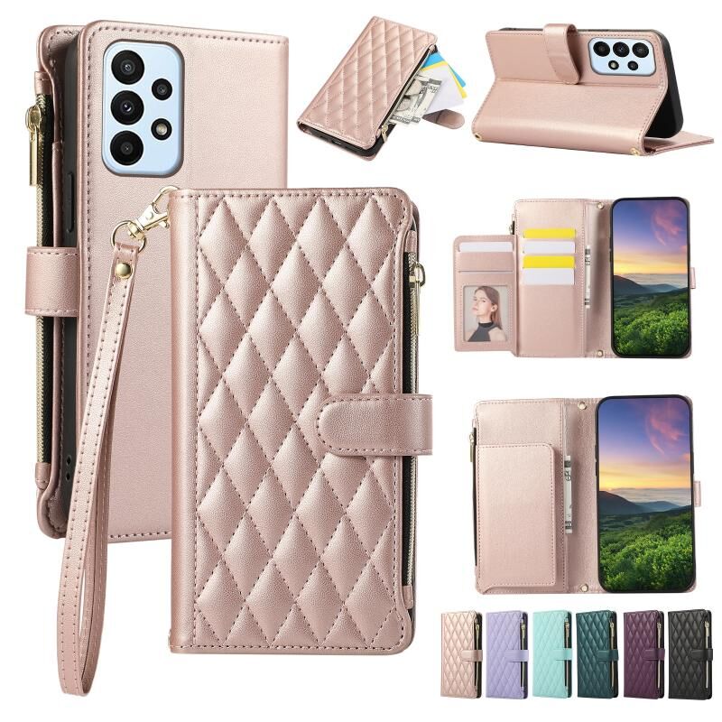 Θήκη κινητού τηλεφώνου Samsung Galaxy A33 5G, δερμάτινη με φερμουάρ και ρόμβους (Μωβ)