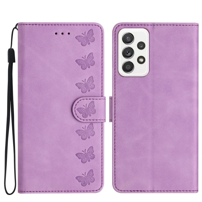 Θήκη τηλεφώνου Samsung Galaxy A33 5G Seven Butterflies, δερμάτινη ανάγλυφη (Μωβ)