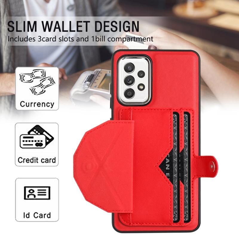Θήκη κινητού Samsung Galaxy A33 5G από δέρμα, ανθεκτική στις κρούσεις, με θήκη για κάρτες (Κόκκινο)