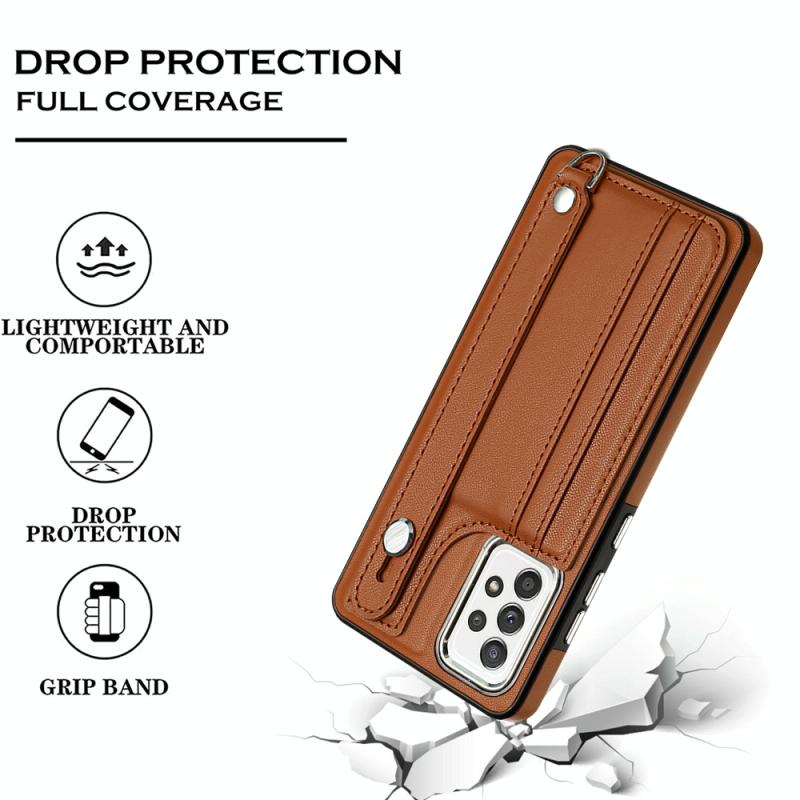 Θήκη κινητού Samsung Galaxy A33 5G από δέρμα, ανθεκτική στις κρούσεις, με λουρί καρπού (Καφέ)