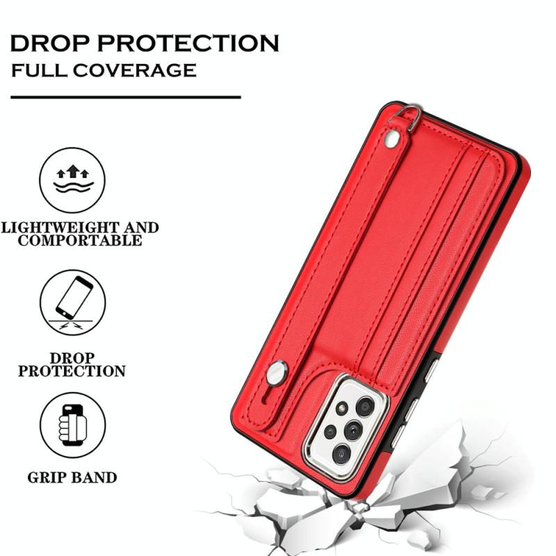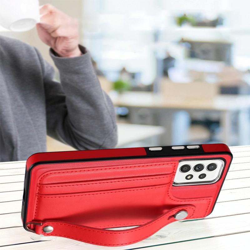 Θήκη κινητού Samsung Galaxy A33 5G από δέρμα, ανθεκτική στις κρούσεις, με λουρί καρπού (Κόκκινο)
