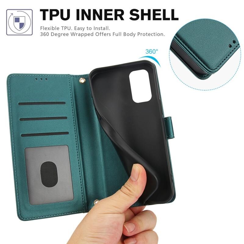 Για Samsung Galaxy A33 5G δέρμα αίσθηση καθαρό χρώμα κάρτα υποδοχές δερμάτινη θήκη τηλεφώνου με διπλή κορδόνι (πράσινο)