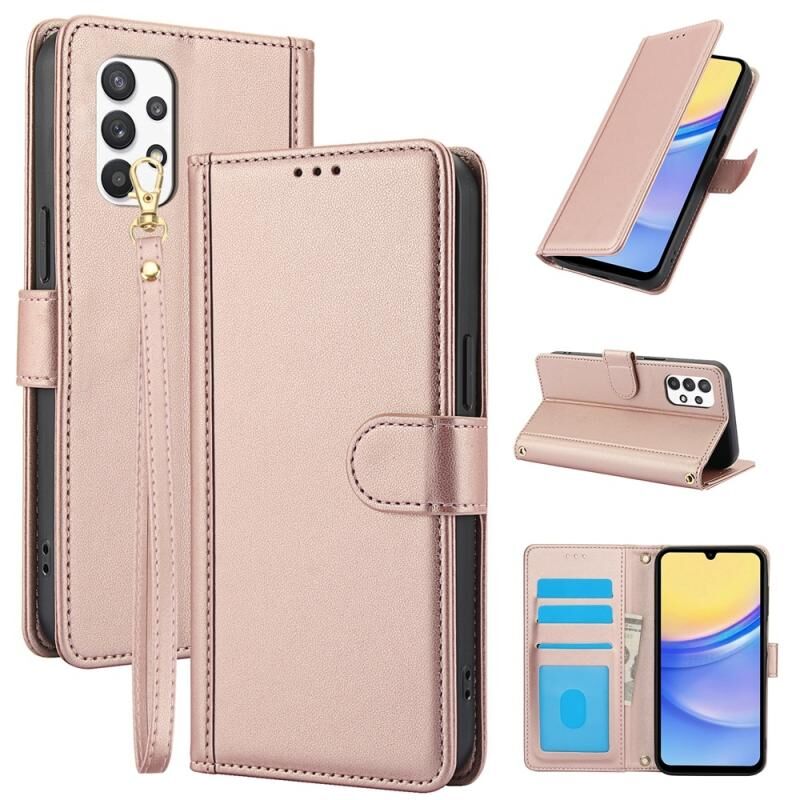 Για Samsung Galaxy A33 5G δέρμα αίσθηση καθαρό χρώμα κάρτα υποδοχές δερμάτινη θήκη τηλεφώνου με διπλή κορδόνι (Rose Gold)