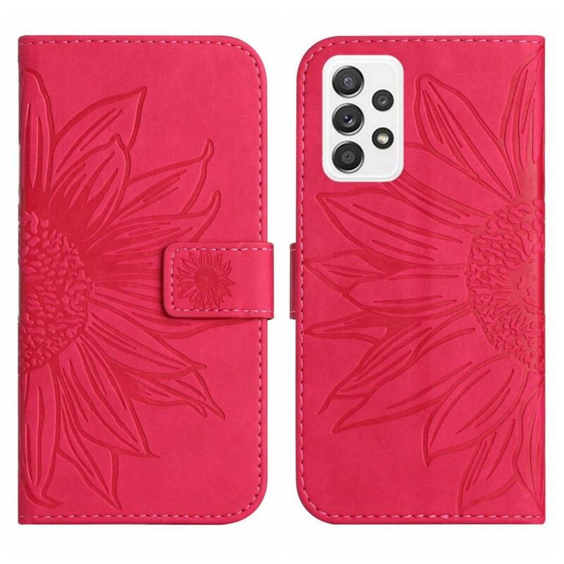 Για το Samsung Galaxy A33 5G δέρμα αίσθηση Sun Flower μοτίβο Flip δέρμα τηλέφωνο υπόθεση με κορδόνι (Rose Red)