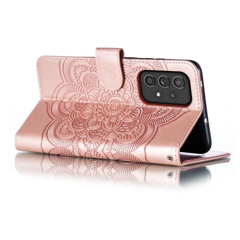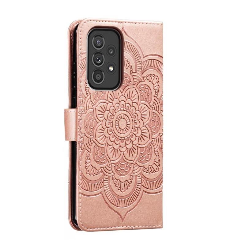 Για Samsung Galaxy A33 5G Sun Mandala ανάγλυφο μοτίβο τηλέφωνο δερμάτινη θήκη (Rose Gold)