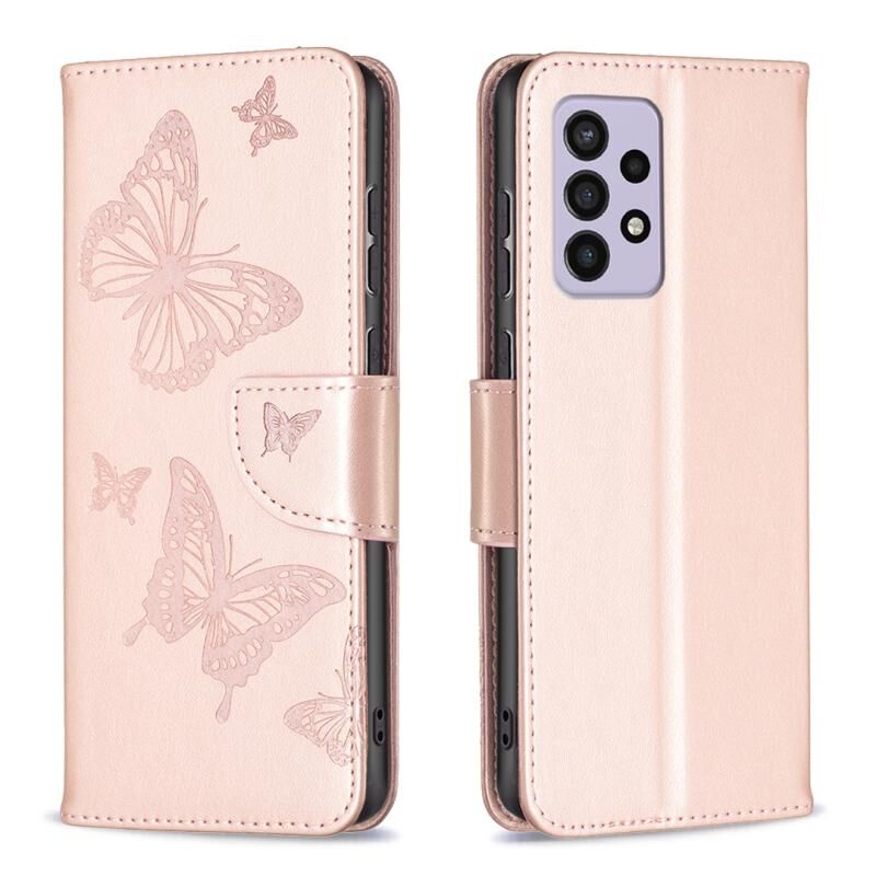 Θήκη τηλεφώνου Samsung Galaxy A33 5G από δέρμα με ανάγλυφο σχέδιο δύο πεταλούδων (Πράσινο)