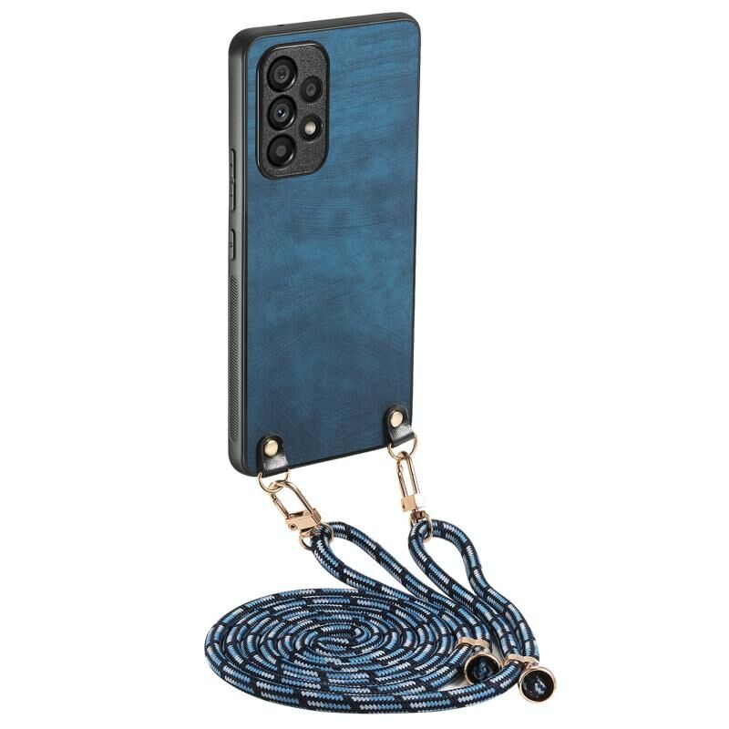 Για Samsung Galaxy A33 5G εκλεκτής ποιότητας δέρμα PC πίσω κάλυψη υπόθεση τηλεφώνου με λουράκι σταυρού (Μπλε)