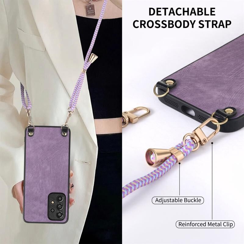 Για Samsung Galaxy A33 5G εκλεκτής ποιότητας δέρμα PC πίσω κάλυψη υπόθεση τηλεφώνου με λουράκι σταυρού (Μωβ)