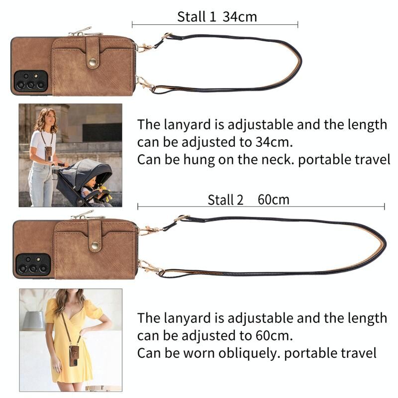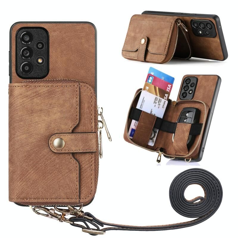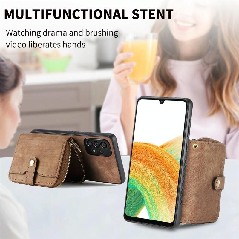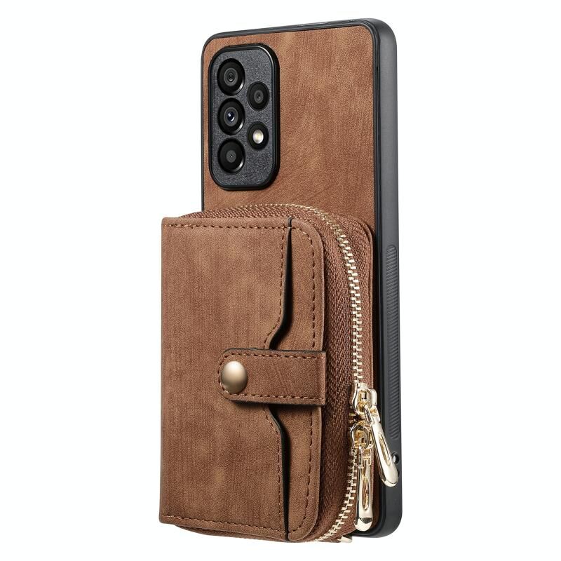 Για Samsung Galaxy A33 Crossbody Multi-λειτουργία φερμουάρ πορτοφόλι θήκη τηλεφώνου (Καφέ)
