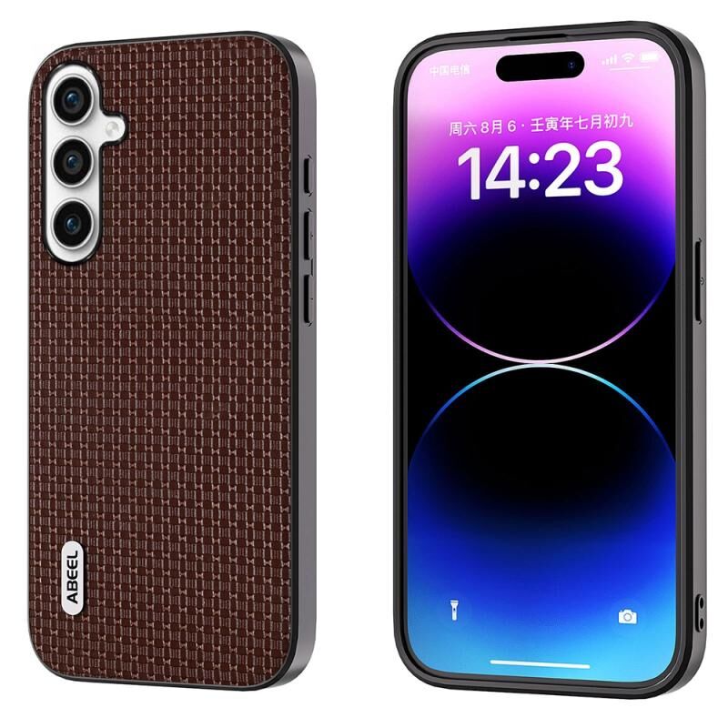 Θήκη τηλεφώνου Samsung Galaxy A34 5G ABEEL από γνήσιο δέρμα, πολυτελής, μαύρη άκρη (Καφέ)