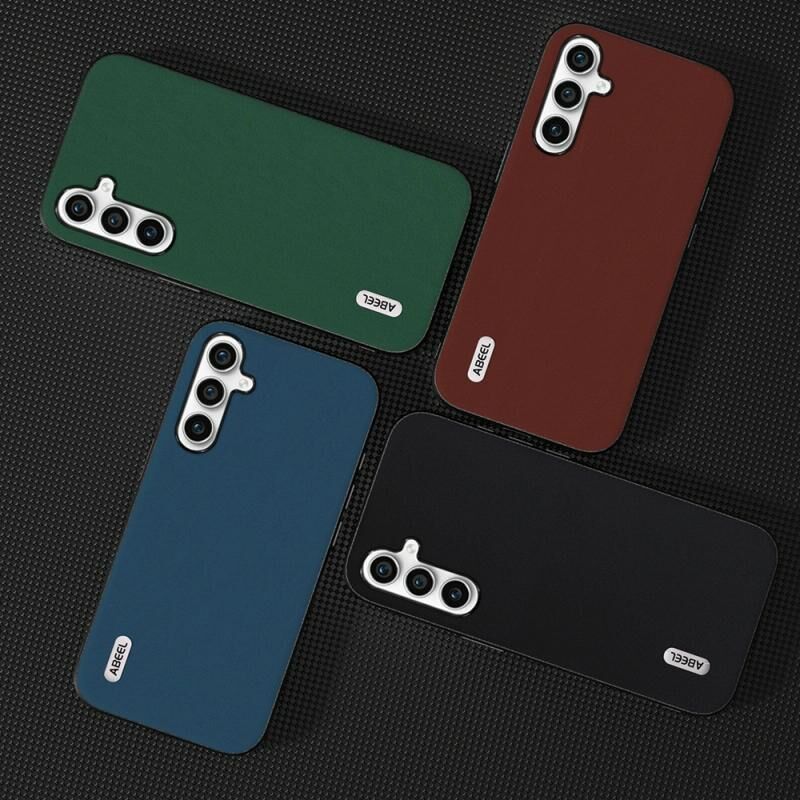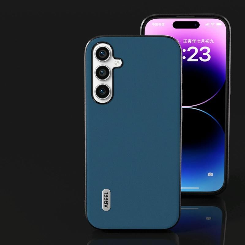 For Samsung Galaxy A34 5G ABEEL Genuine Leather Silky Soft Black Edge Phone Case(Blue)