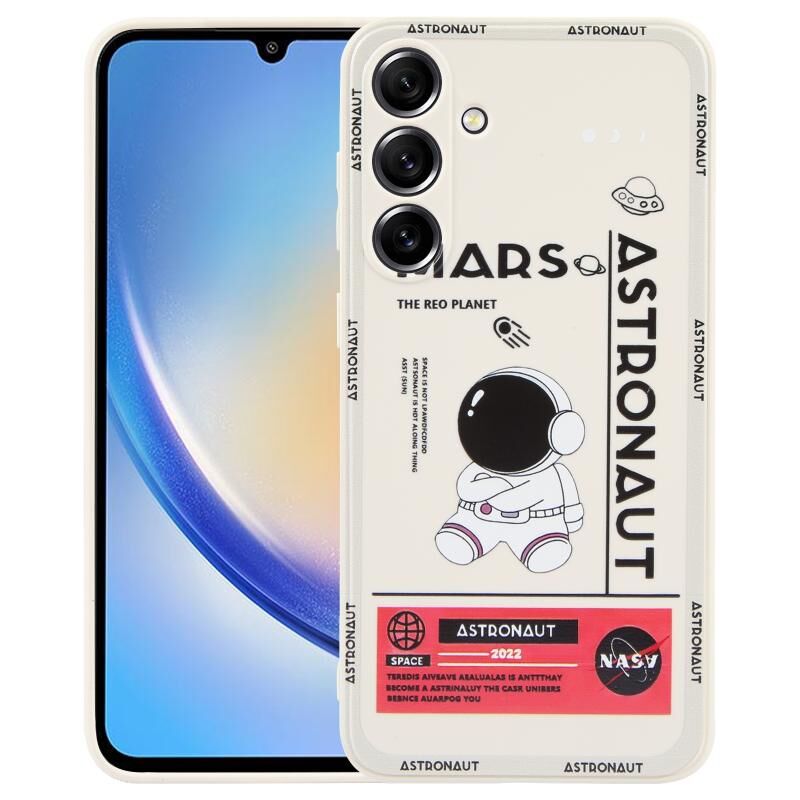 For Samsung Galaxy A34 5G Astronaut Pattern Silicone Straight Edge Phone Case(Mars Astronaut-White)