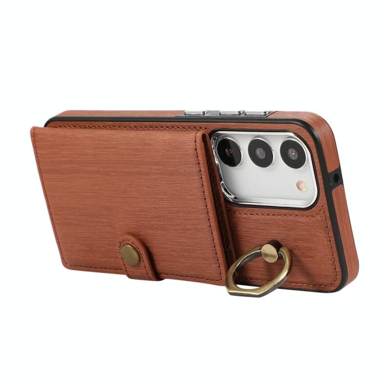 Για Samsung Galaxy A34 5G βουρτσισμένη υφή πορτοφόλι δαχτυλίδι κάτοχος θήκη τηλεφώνου (Καφέ)