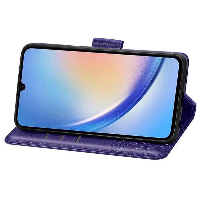 For Samsung Galaxy A34 5G Butterfly Love Flower Embossed Leather Phone Case(Purple)