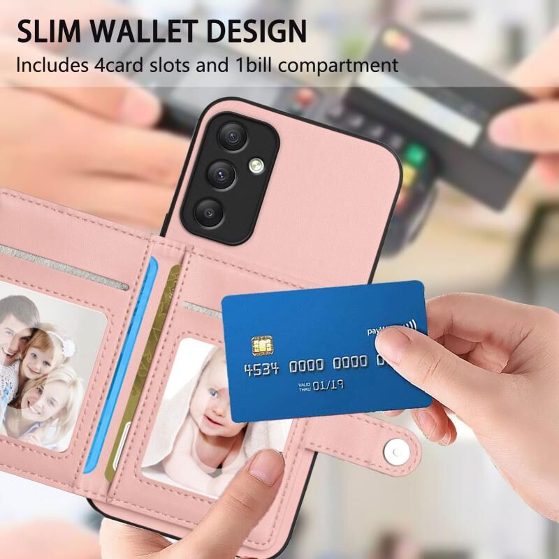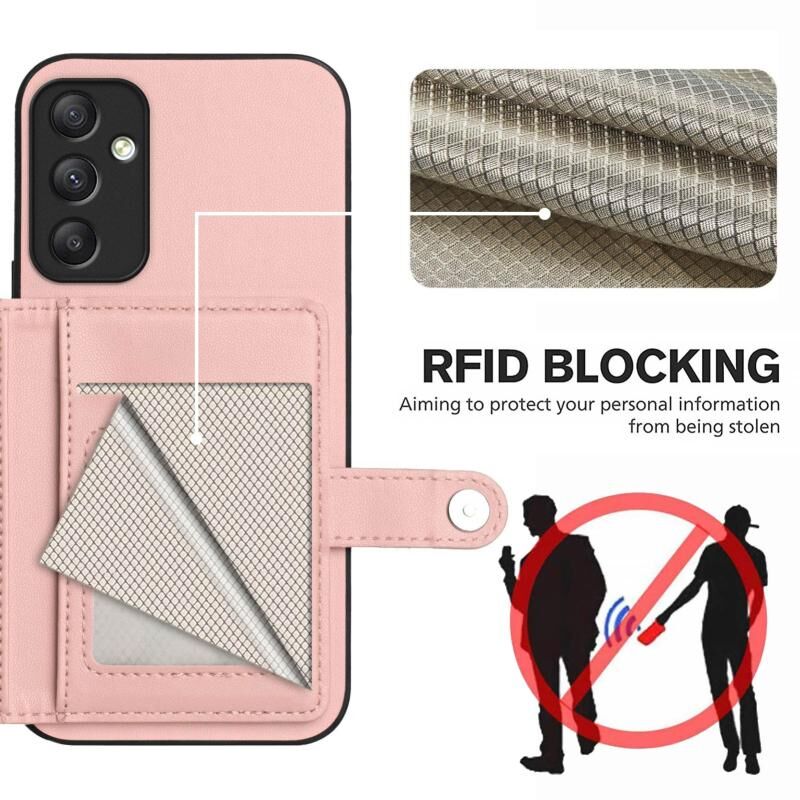 For Samsung Galaxy A34 5G Button Card Bag RFID Anti-theft Phone Case(Pink)