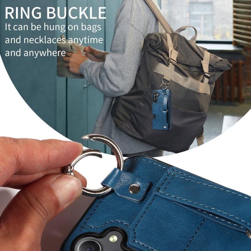 Για Samsung Galaxy A34 5G Calf υφή καρπού κάρτα Slot Ring υπόθεση τηλεφώνου (Μπλε)