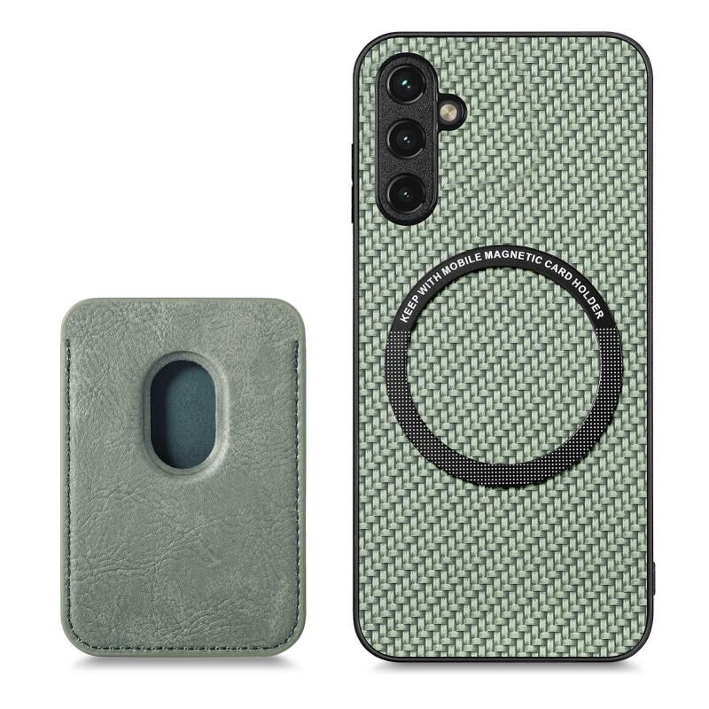 For Samsung Galaxy A34 5G Carbon Fiber Leather Card Magsafe Magnetic Phone Case(Green)