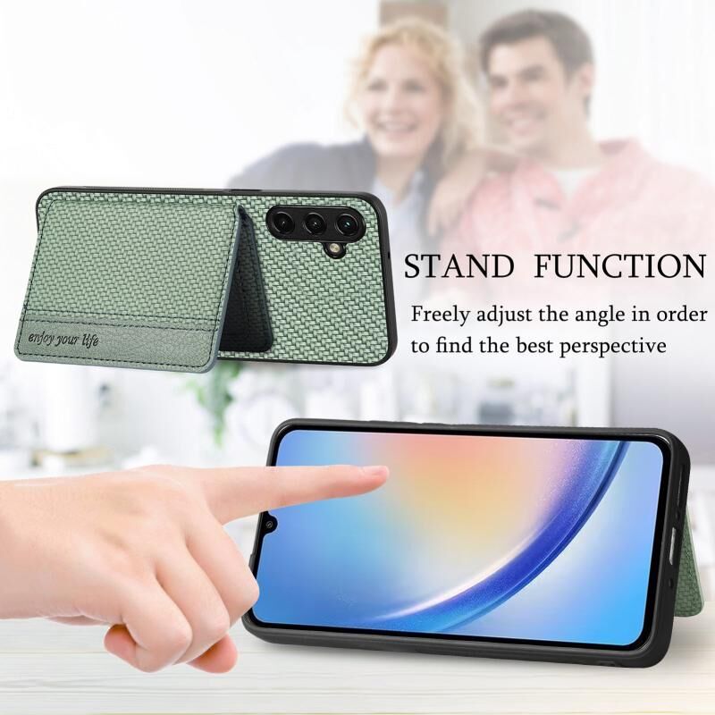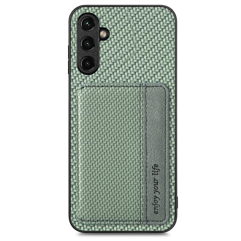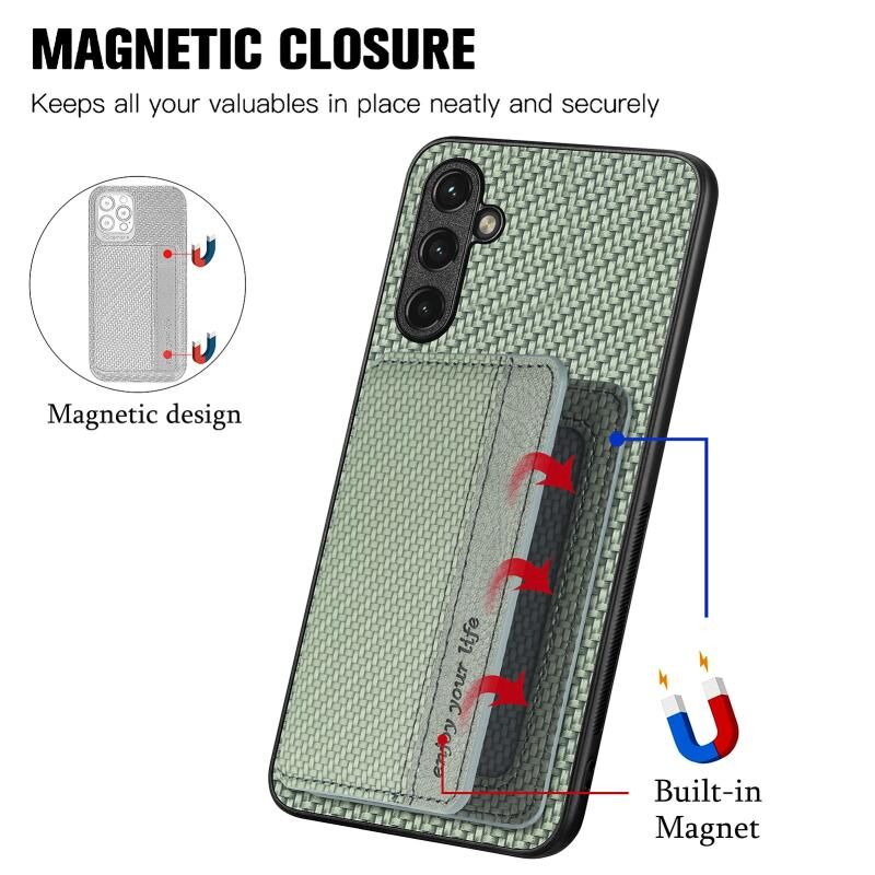 Για Samsung Galaxy A34 5G ινών άνθρακα μαγνητική κάρτα πορτοφόλι τσάντα πορτοφόλι υπόθεση τηλεφώνου (πράσινο)