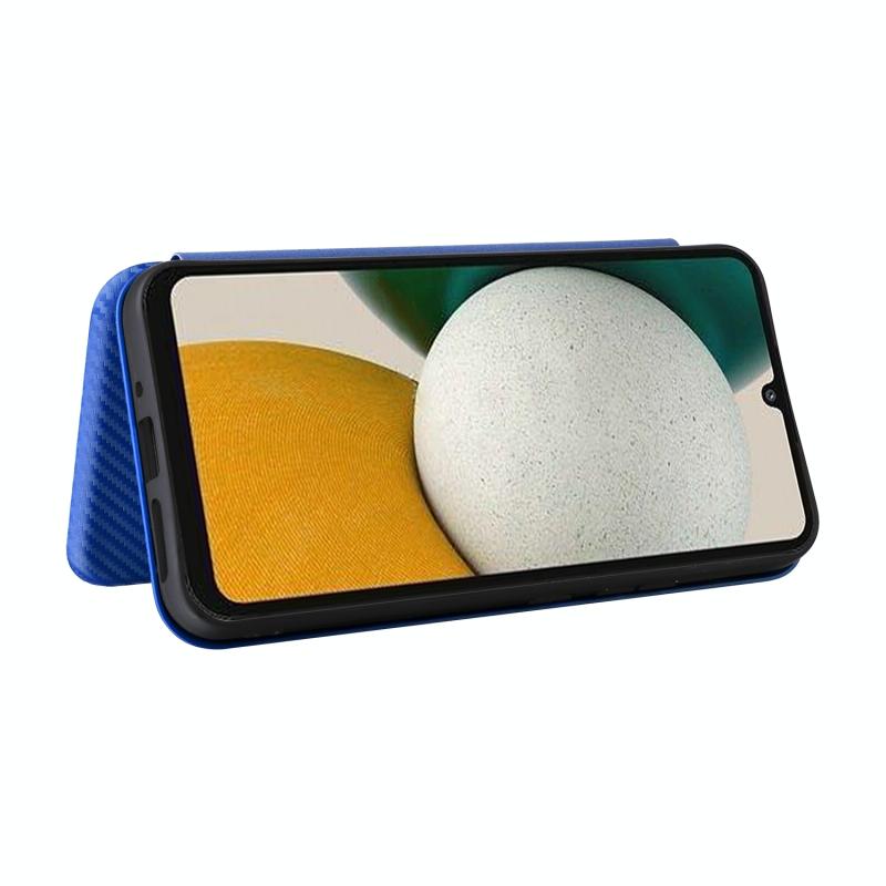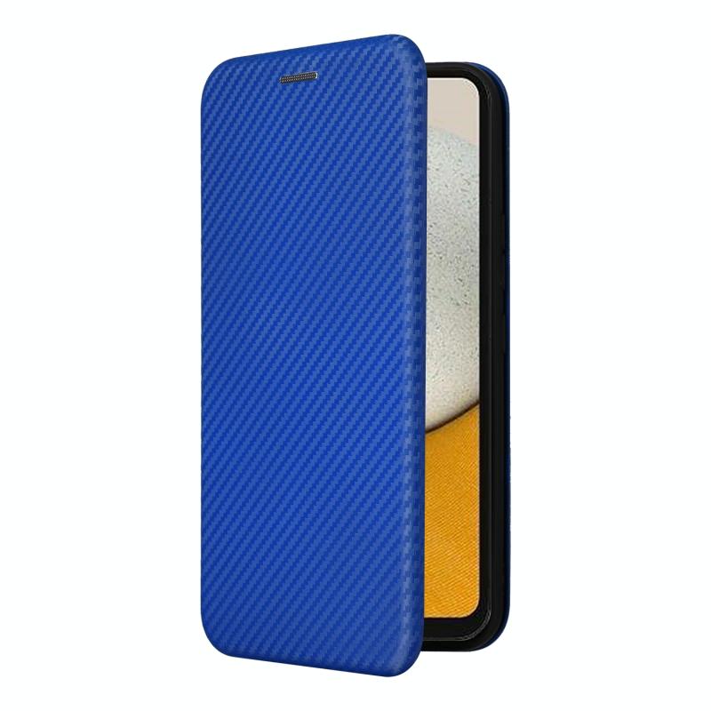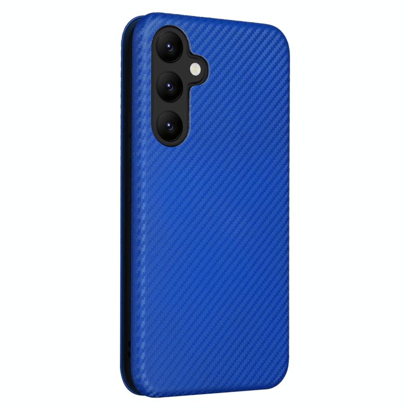 Θήκη τηλεφώνου Samsung Galaxy A34 5G από δέρμα με υφή ανθρακονημάτων (Μπλε)