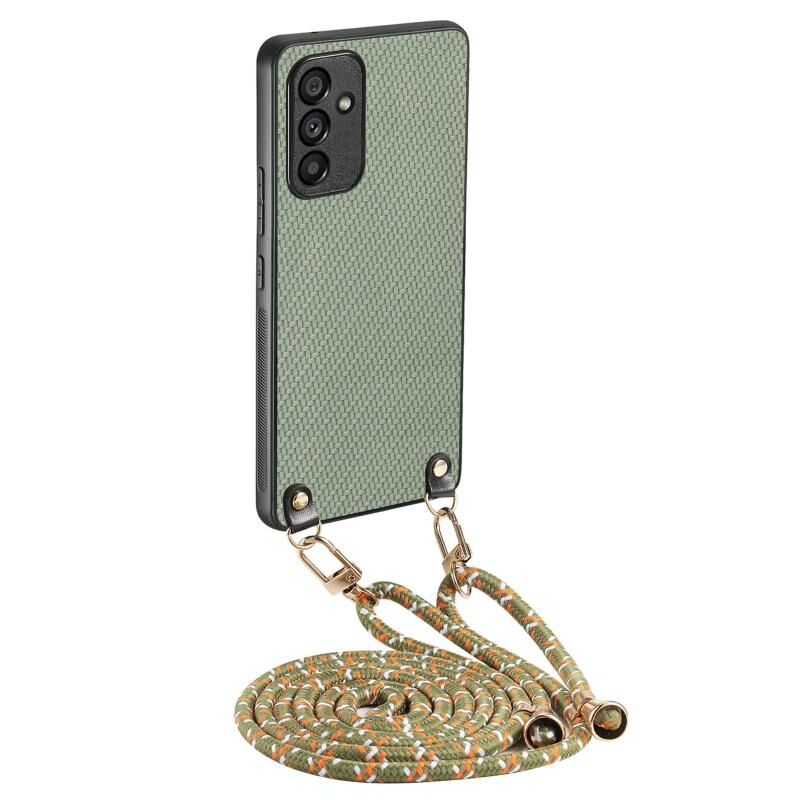 Για Samsung Galaxy A34 5G Carbon Fiber Texture δέρμα πίσω κάλυμμα υπόθεση τηλεφώνου με λουράκι σταυρού (πράσινο)