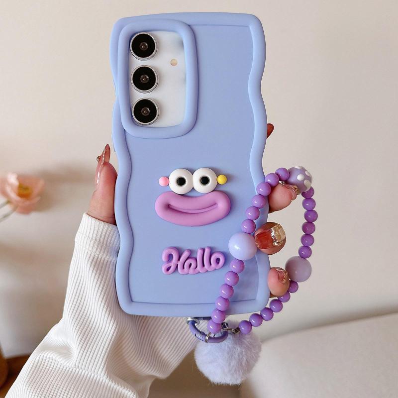 For Samsung Galaxy A34 5G Cartoon Sausage Mouth TPU Phone Case with Bead Chain(Purple)