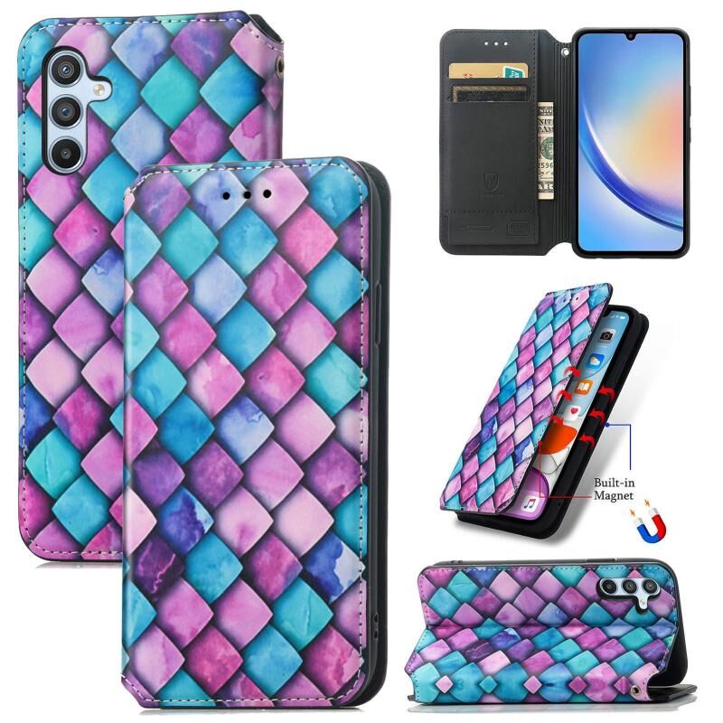 Θήκη για Samsung Galaxy A34 5G CaseNeo Πολύχρωμη Μαγνητική Δερμάτινη Θήκη Τηλεφώνου (Μωβ Λέπια)