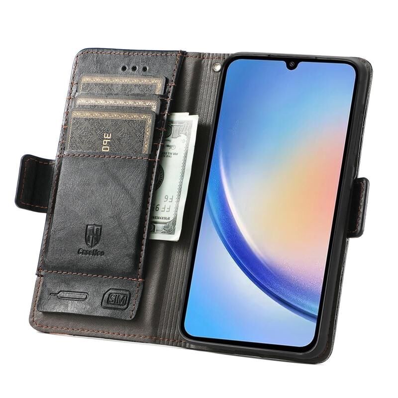 Για Samsung Galaxy A34 5G CaseNeo Splicing Διπλή μαγνητική πόρπη δερμάτινη θήκη τηλεφώνου (μαύρο)