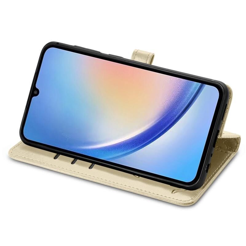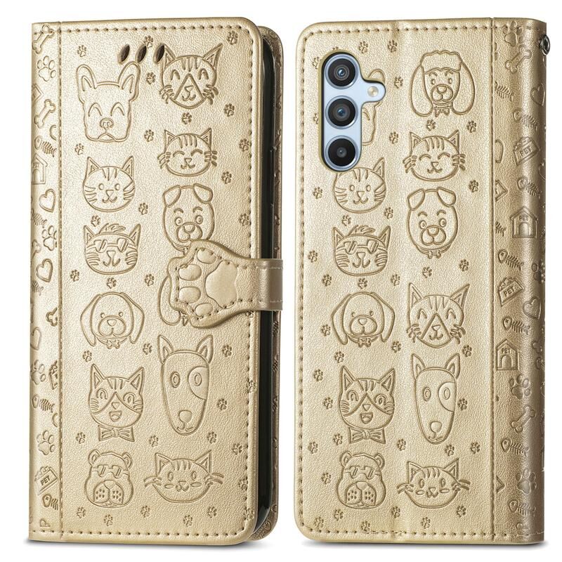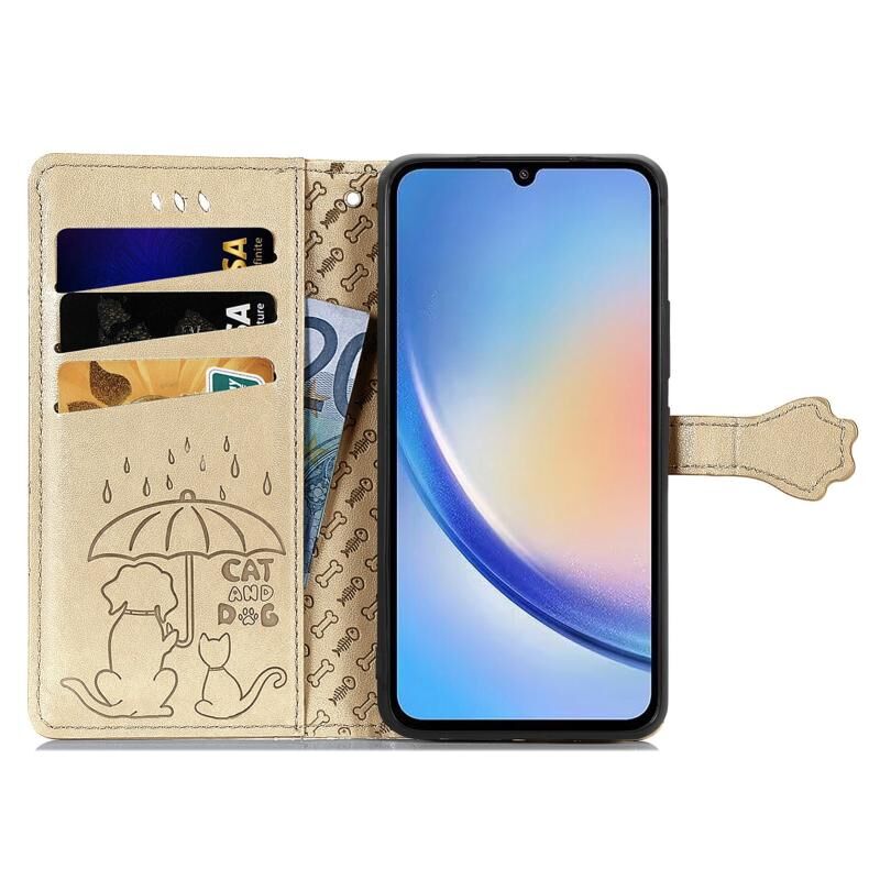 Θήκη τηλεφώνου δερμάτινη με ανάγλυφο σχέδιο γάτας και σκύλου για Samsung Galaxy A34 5G (Μωβ)