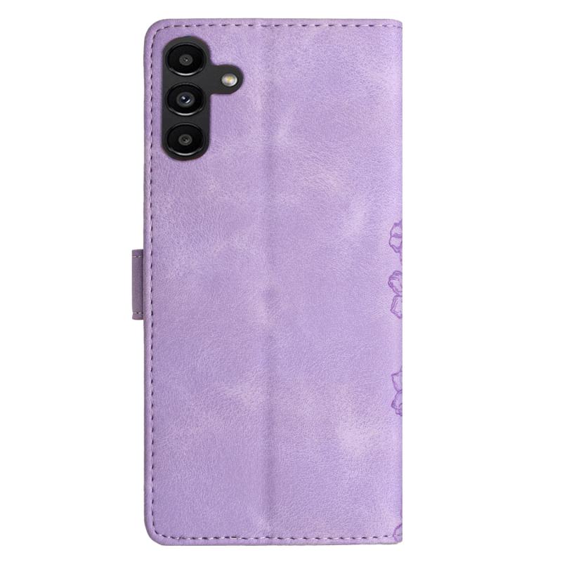 For Samsung Galaxy A34 5G Cherry Blossom Butterfly Skin Feel Embossed PU Phone Case(Purple)