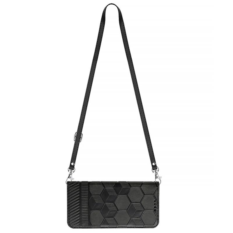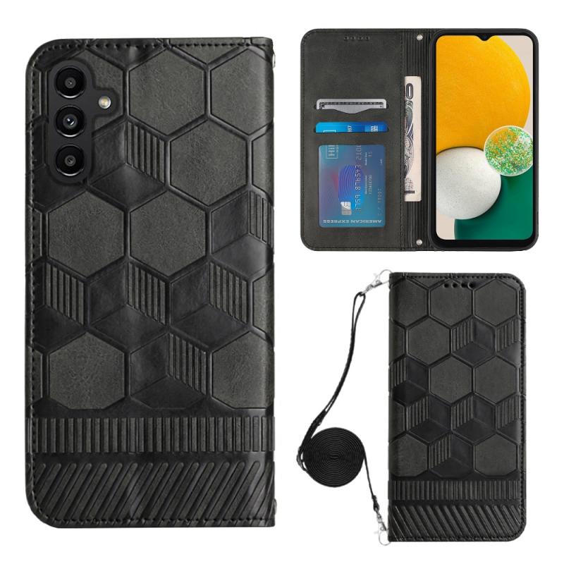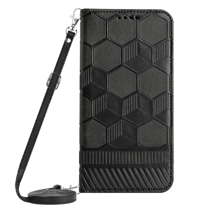 Θήκη κινητού τηλεφώνου Samsung Galaxy A34 5G, τύπου crossbody, με υφή ποδοσφαίρου, μαγνητική, από PU δέρμα (Μαύρο)