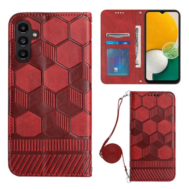Για Samsung Galaxy A34 5G Crossbody ποδόσφαιρο υφή μαγνητική PU υπόθεση τηλεφώνου (Κόκκινο)