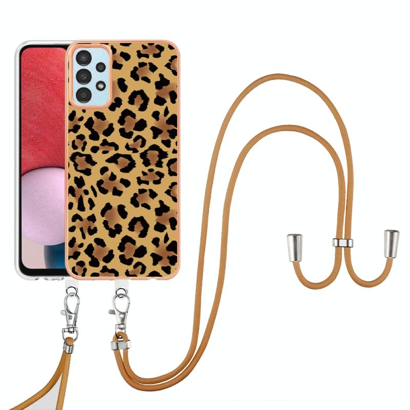 For Samsung Galaxy A34 5G Electroplating Dual-side IMD Phone Case with Lanyard(Leopard Print)