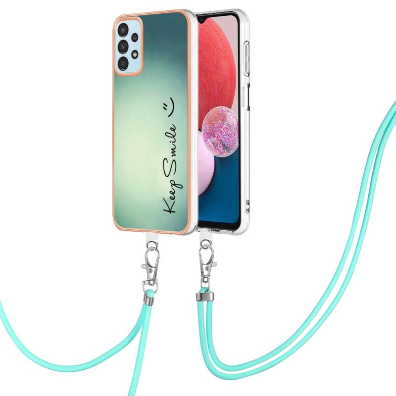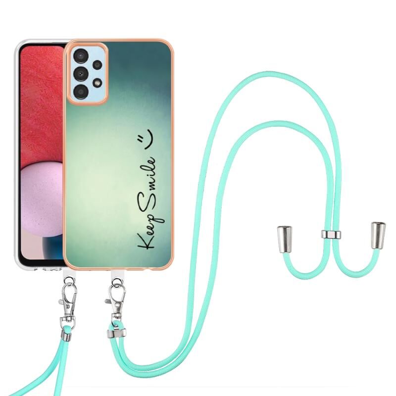 For Samsung Galaxy A34 5G Electroplating Dual-side IMD Phone Case with Lanyard(Smile)