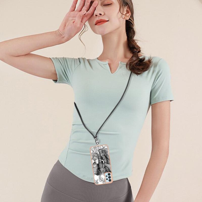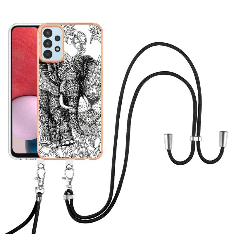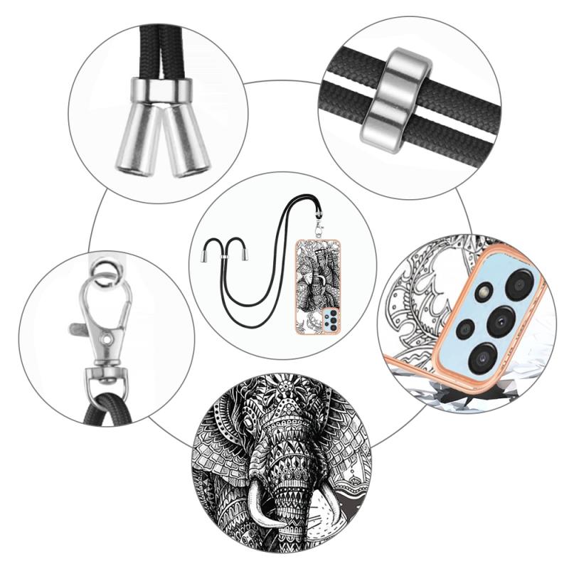 For Samsung Galaxy A34 5G Electroplating Dual-side IMD Phone Case with Lanyard(Totem Elephant)