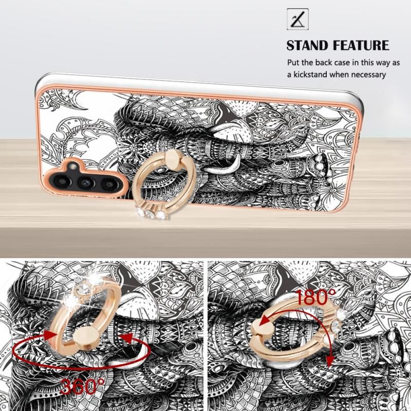 Θήκη τηλεφώνου με δακτύλιο στήριξης και διπλή όψη IMD με ηλεκτρολυτική επικάλυψη για Samsung Galaxy A34 5G (Totem Elephant)