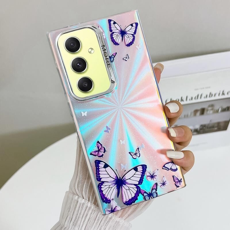 Θήκη τηλεφώνου Samsung Galaxy A34 5G με ηλεκτρολυτική επίστρωση, σχέδιο Laser Butterfly (Μωβ Πεταλούδες AB3)