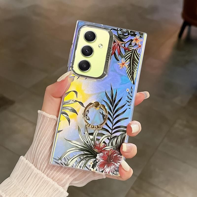 Θήκη τηλεφώνου TPU με δακτύλιο στήριξης και σχέδιο λουλουδιών με λέιζερ και ηλεκτρολυτική επικάλυψη για Samsung Galaxy A34 5G (Φύλλα AH12)