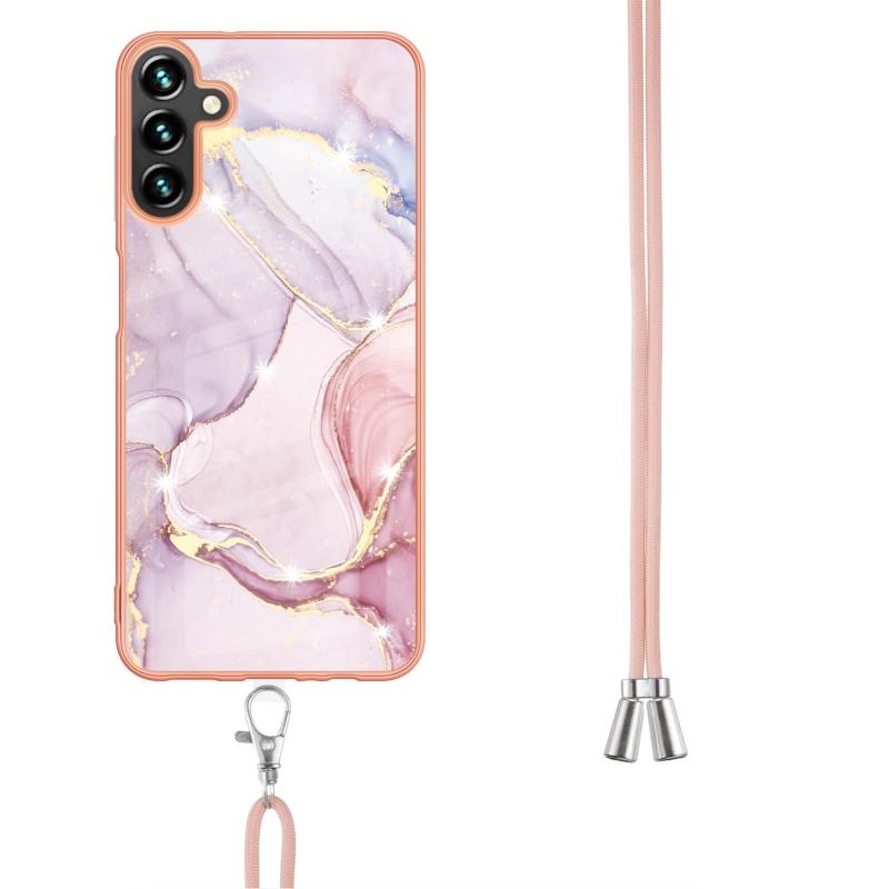 For Samsung Galaxy A34 5G Electroplating Marble IMD TPU Phone Case with Lanyard(Rose Gold 005)