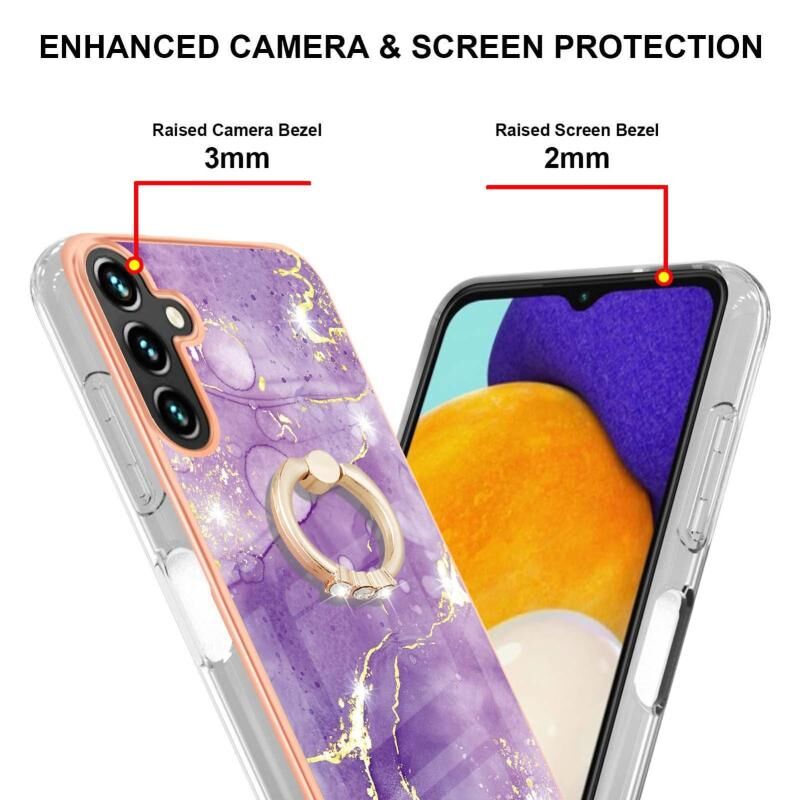 Θήκη κινητού τηλεφώνου Samsung Galaxy A34 5G με Ηλεκτρολυτική επικάλυψη, σχέδιο Μάρμαρου IMD, από TPU με Δακτύλιο Στήριξης (Λευκό 006)