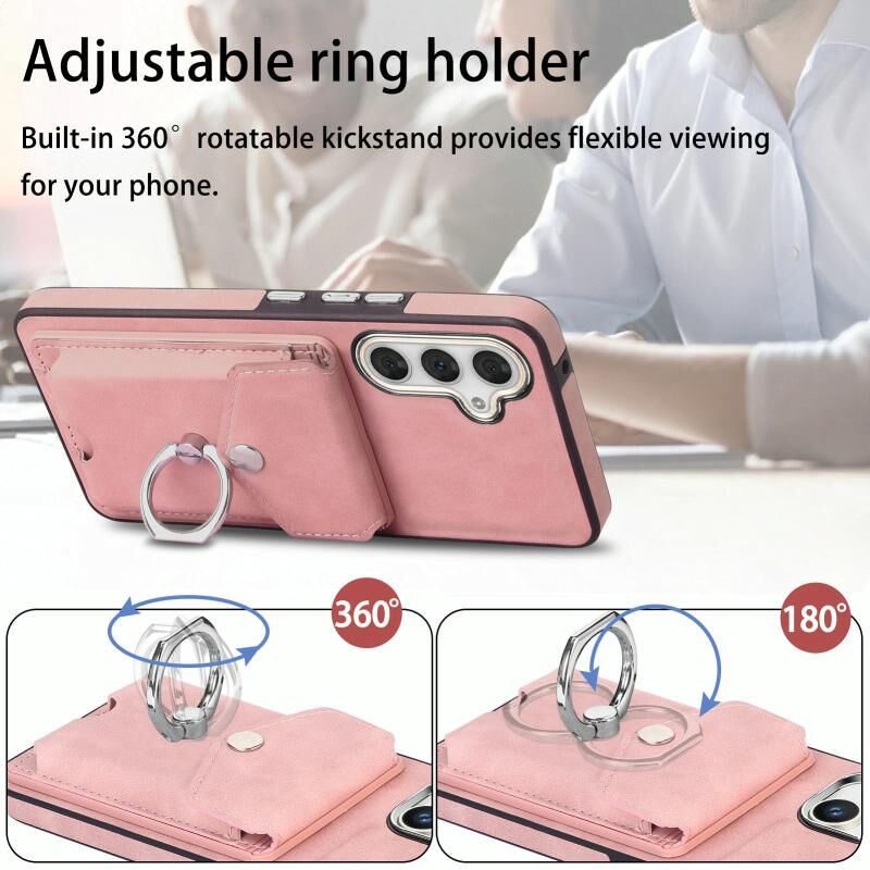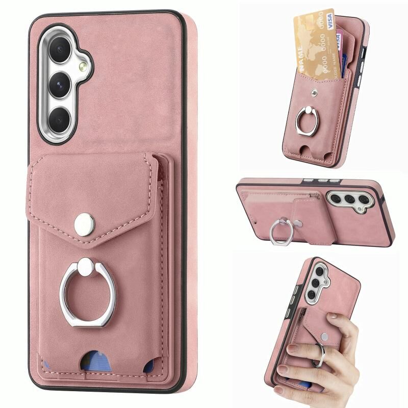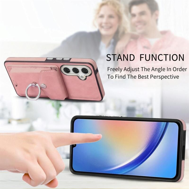 Για Samsung Galaxy A34 5G Electroplating Skin-feel δέρμα δαχτυλίδι κάρτα πορτοφόλι υπόθεση τηλεφώνου (ρόζ)