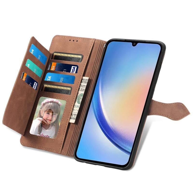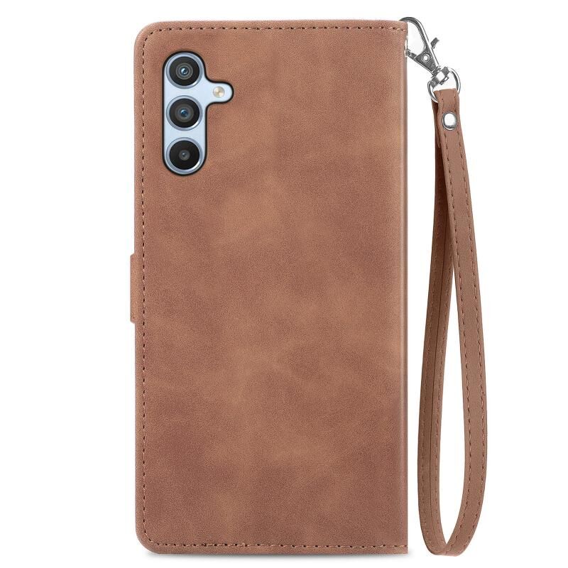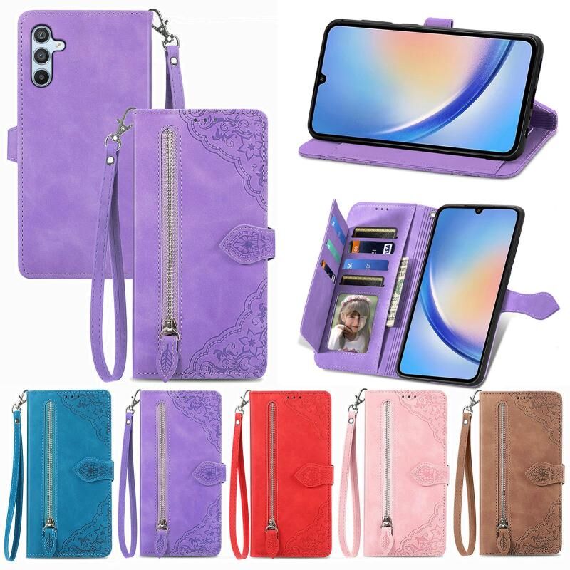Για Samsung Galaxy A34 5G ανάγλυφο λουλούδι φερμουάρ δερμάτινη θήκη τηλεφώνου (καφέ)