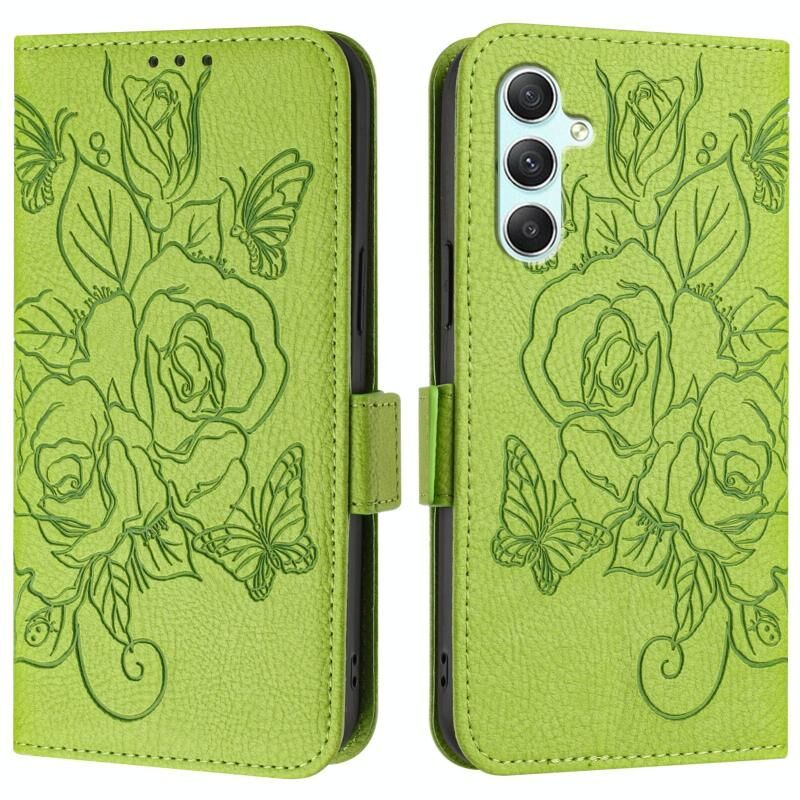 Για Samsung Galaxy A34 5G ανάγλυφο Rose RFID Anti-theft δερμάτινη θήκη τηλεφώνου (πράσινο)