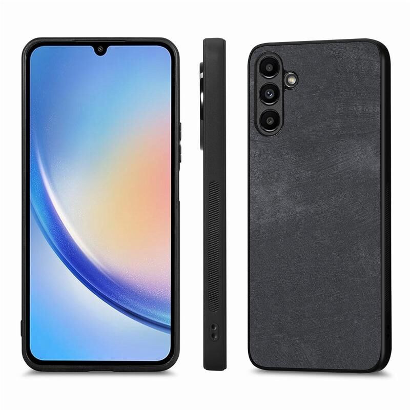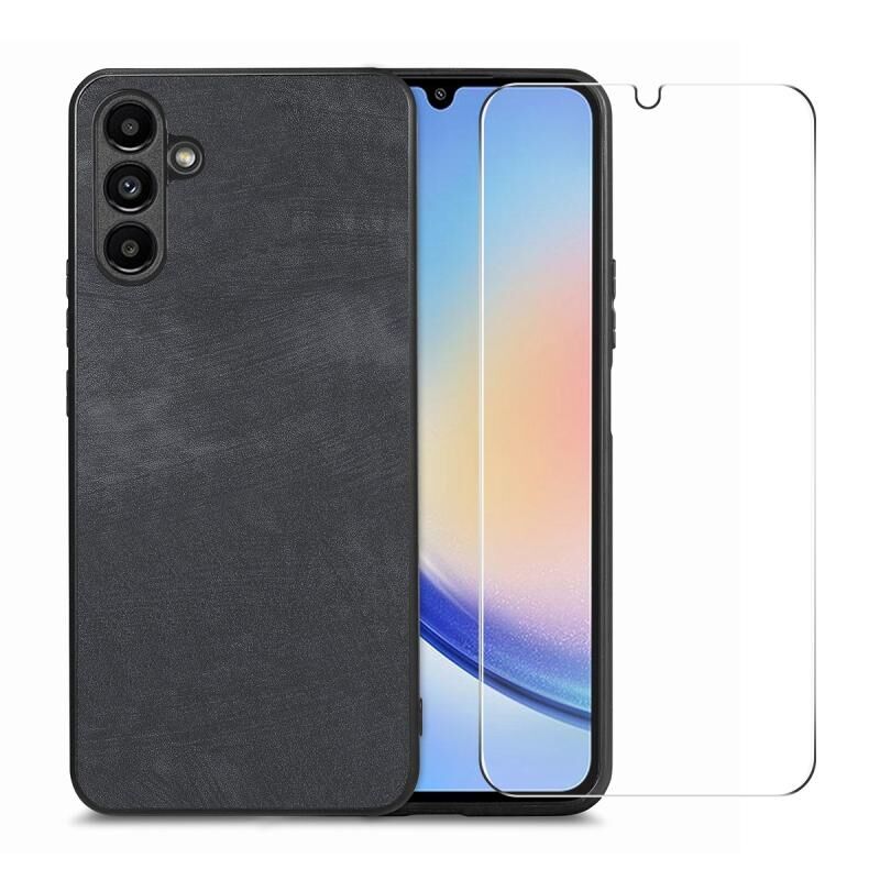 Θήκη κινητού τηλεφώνου Samsung Galaxy A34 5G ENKAY από δέρμα retro με PC και προστατευτική μεμβράνη από γυαλί αλουμινίου-πυριτίου (Ροζ) (Μαύρο)